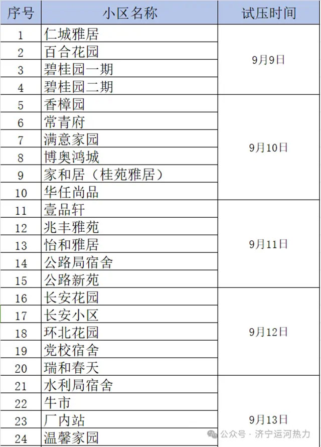 第二批試壓小區(qū)的試壓時(shí)間另行通知,請(qǐng)廣大用戶(hù)留意公眾號(hào)發(fā)布信息及單元通知欄張貼信息。